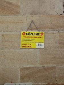 St. Andrew’s (http://www.ohta.org.au/confs/Sydney/STANDREWSCONGREGATIONAL.html) was opened in 1855. The food section of the market was located in what is probably the community hall of the church. We enjoyed homemade Thai Chicken and Vegetable Dumplings and a wonderful dish called Gozleme. It is a Turkish meal. It was fabulous to watch two traditional Turkish women roll the dough, add ingredients, oil the griddle, flip the pastry, cut it and serve it with a lemon. Definitely NO extras laying around!