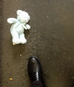 Somewhere in Melbourne a little child is mourning the loss of his/her favourite stuffed bear. Found this in an alley yesterday afternoon and was immediately reminded of when little MBD’s first prized purple bear fell out of our stroller at a TCU pep rally and was never seen again. These kinds of casualties happen from time to time; fortunately, new teddy bears are born every day around the world and the pain of this loss will fade with time. (I picked it up and put it in a more conspicuous place in case anyone came looking for it.)