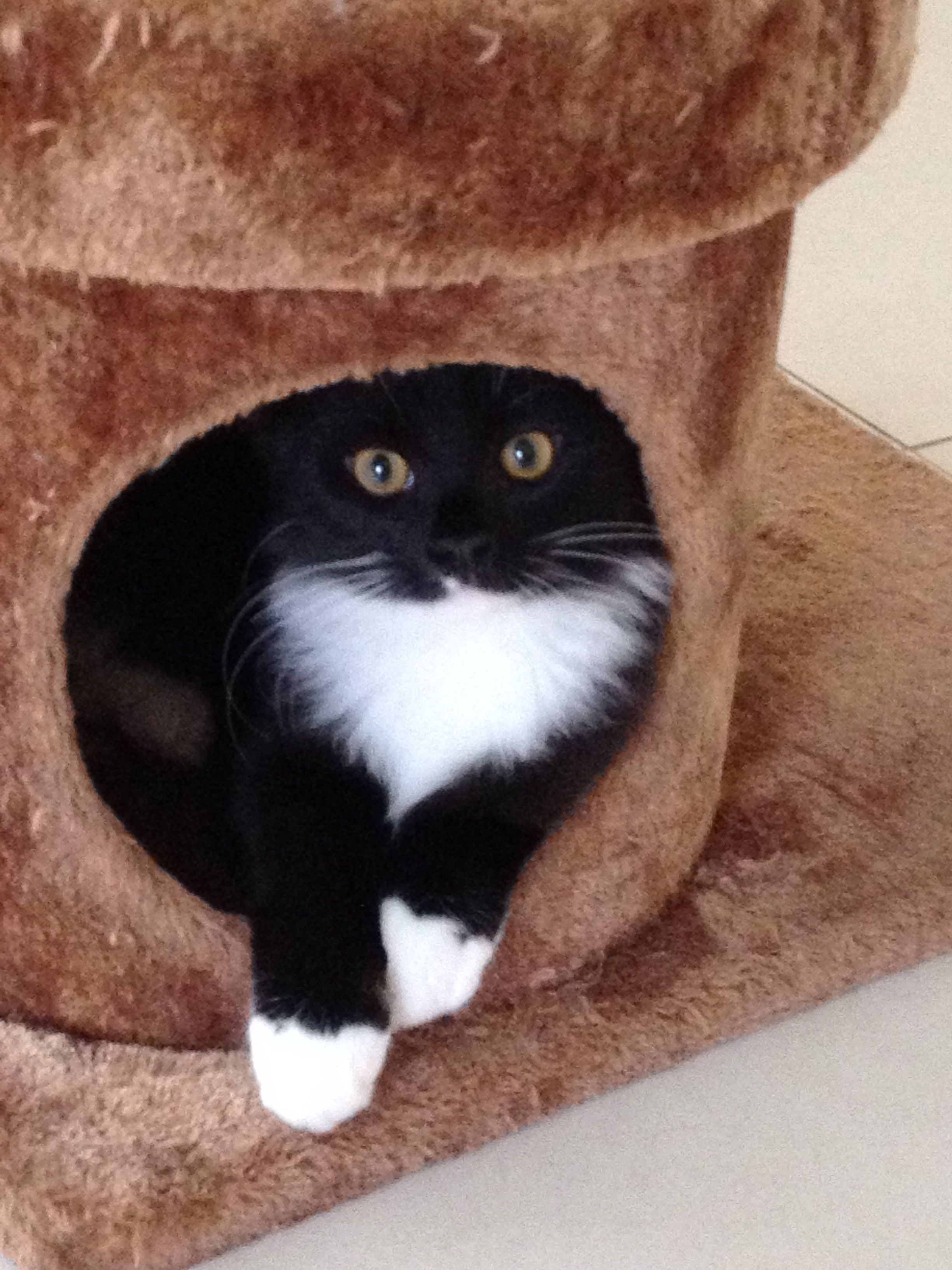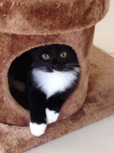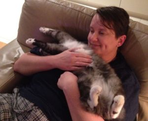The kittens are now 6 months old and the loves of our lives! Hard to believe. They are the most lovable and affectionate animals I have come in contact with in my life. They also piss me off and sometimes barely make it through to see the light of the next day. They play in forgotten water cups spilling the contents on whatever is underneath. The last fiasco was tipping over the cat litter bag and peeing half in the bag and half on the floor. Thanks so much for that, Thumper. Here are some updated pictures. Mickie is the black one and Thumper is truly asleep on my chest – his favorite place to take a nap 10 times a day
