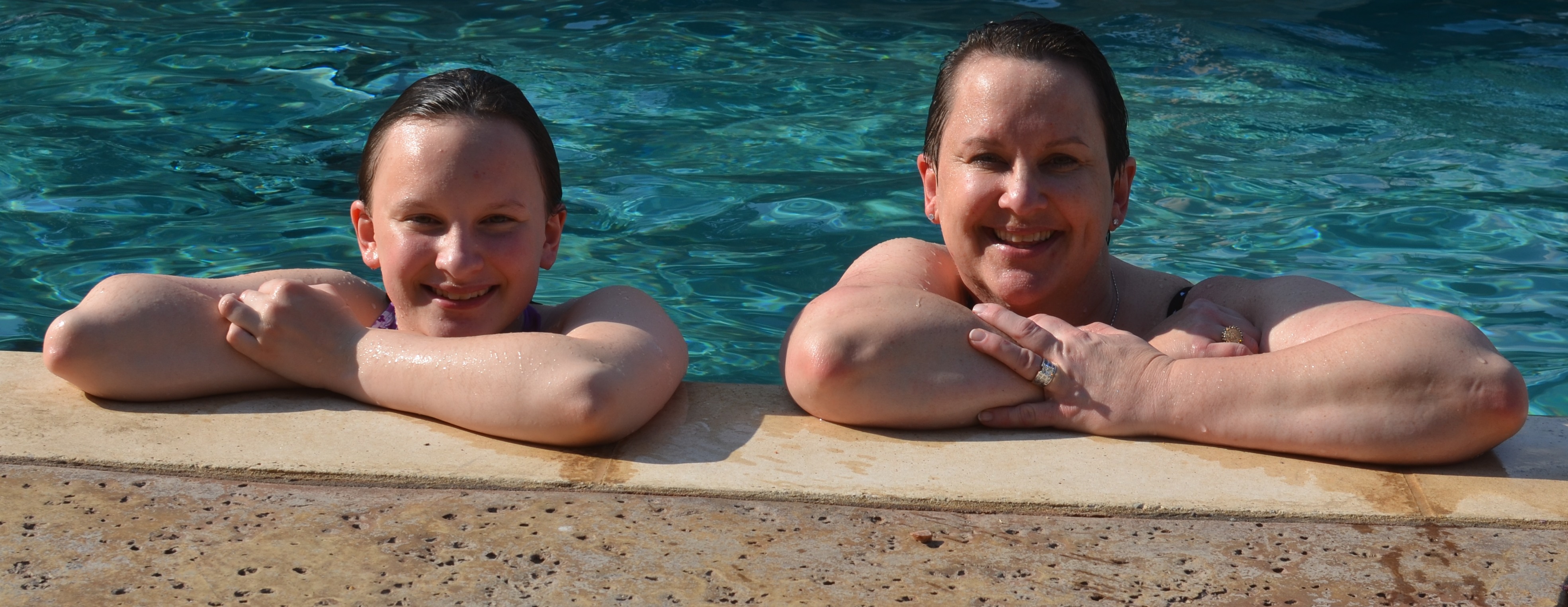 Here’s a good way to fight jet lag. After a 15 hour flight and an evening of recovery, what better thing to do than plunge into the pool of good friends from Texas? Here is MBW and MBD enjoying the pool, which was like bath water in the 99 degree heat of the last day of June in the Dallas area! AAAAAAAhhhh!