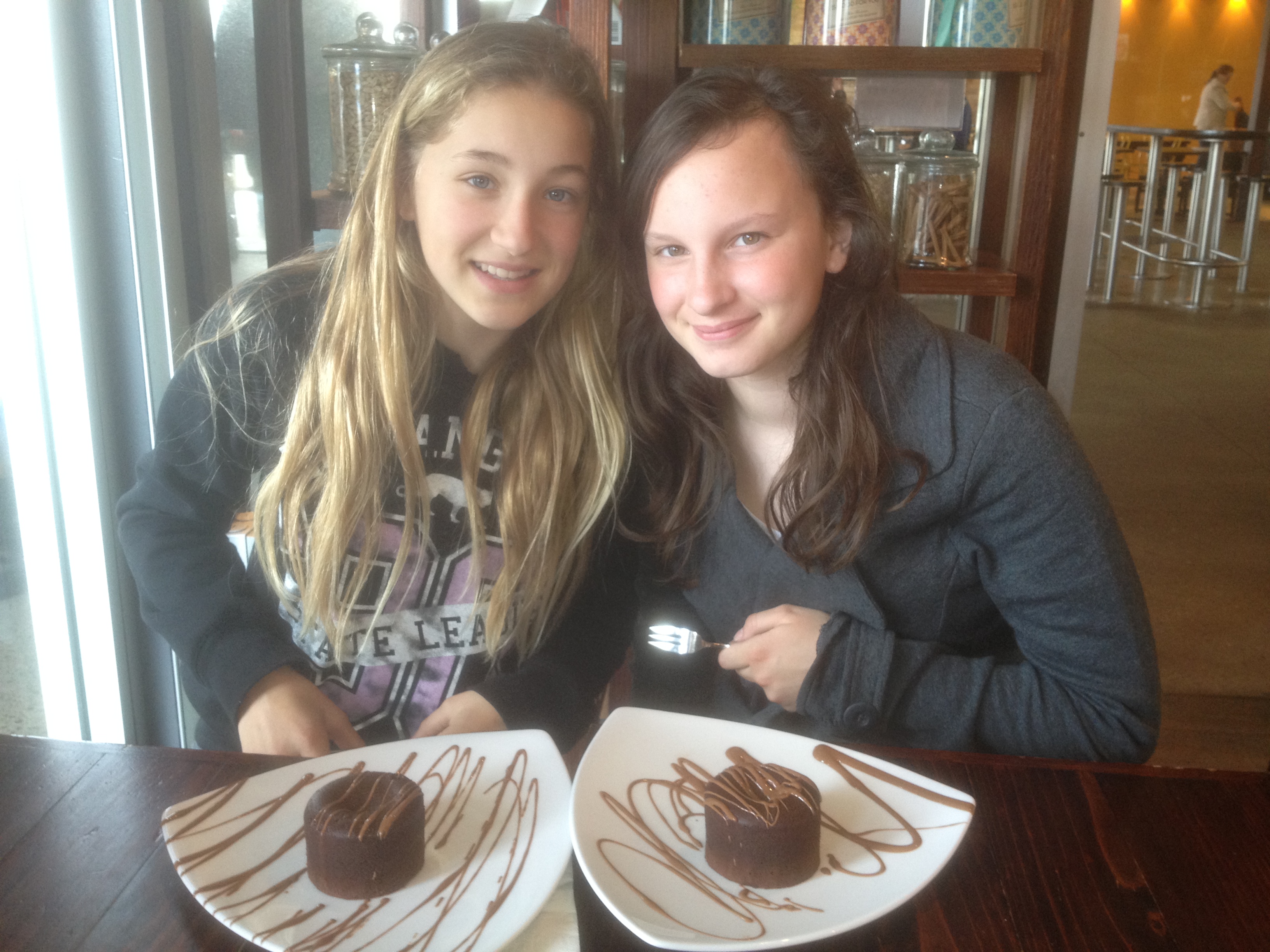 Matilda AKA “Tilly” and MBD enjoy a chocolate souffle at Max Brennan’s chocolate shoppe at the Manly Wharf. Very windy, rainy, and chilly this weekend but Tilly and Lili have been lobbying hard for me to take the girls to this popular chain that is all over Australia. That’ll take the chill away, if only for a moment!
