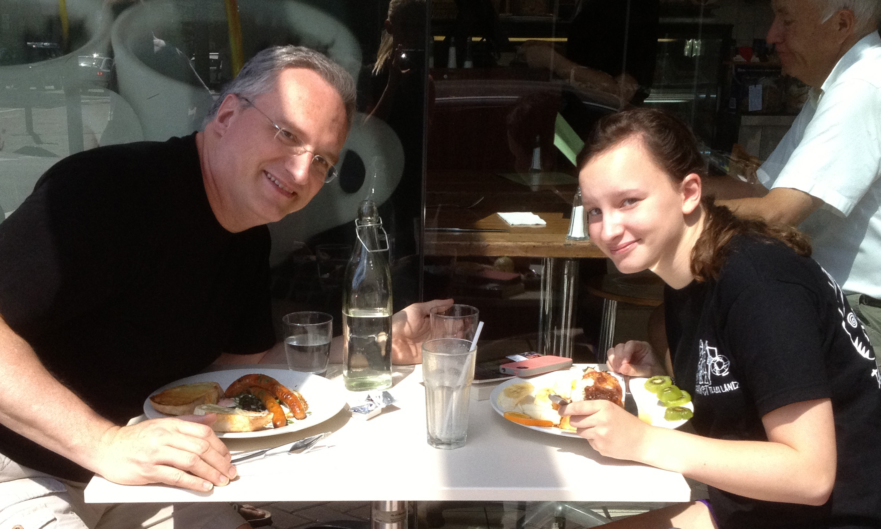 When Mom’s Away…the Family Goes out for Brunch! November 25, 2012November 26, 2012 / messpot At the Four Olives Restaurant, in downtown Manly, NSW. MBD had french toast and TWO milkshakes! LBT waited on us! Share this:Share Click to print (Opens in new window) Print Click to email a link to a friend (Opens in new window) Email Click to share on X (Opens in new window) X Click to share on Facebook (Opens in new window) Facebook Click to share on Pinterest (Opens in new window) Pinterest Click to share on LinkedIn (Opens in new window) LinkedIn Click to share on Reddit (Opens in new window) Reddit Click to share on Tumblr (Opens in new window) Tumblr Like Loading... Related