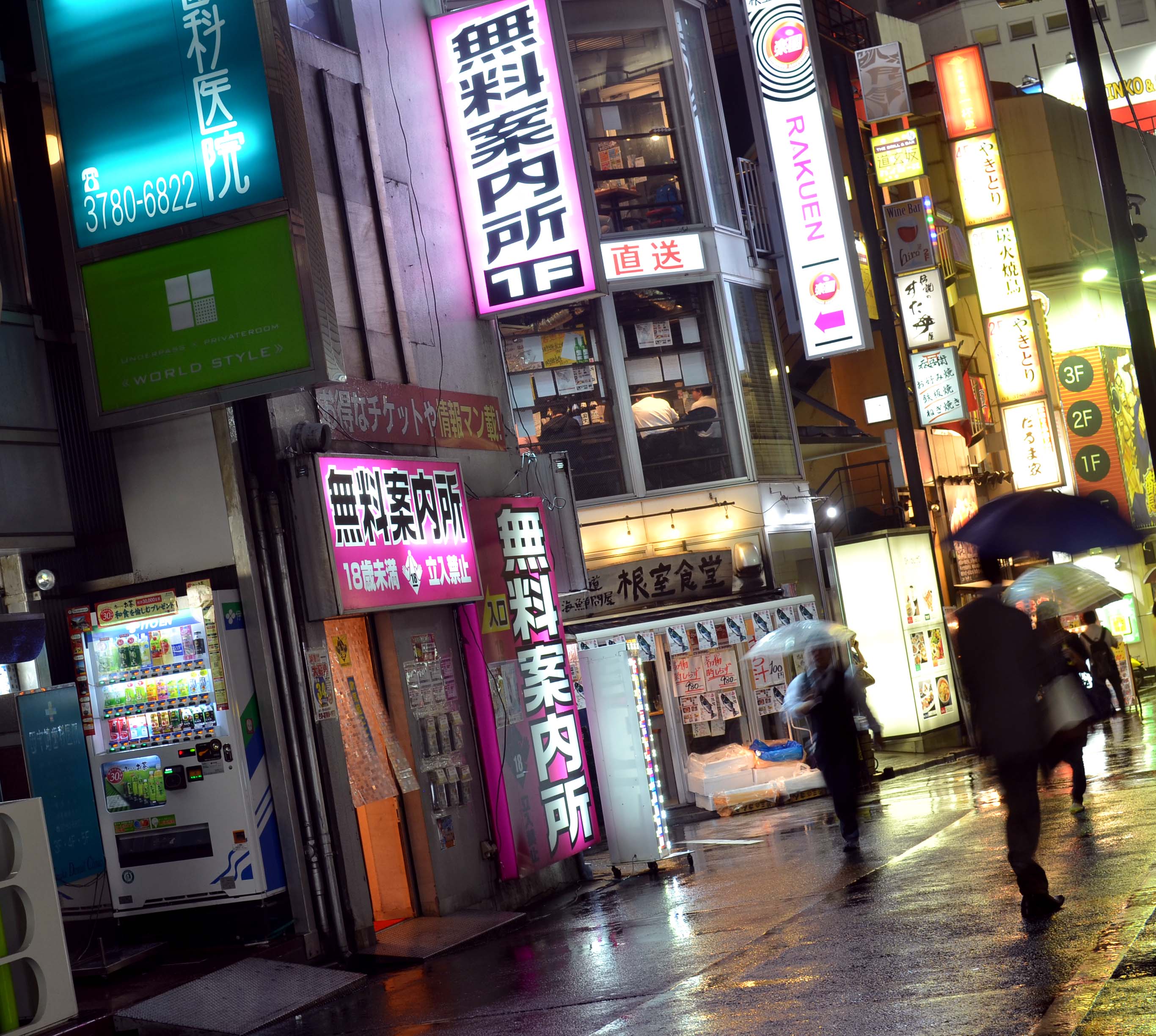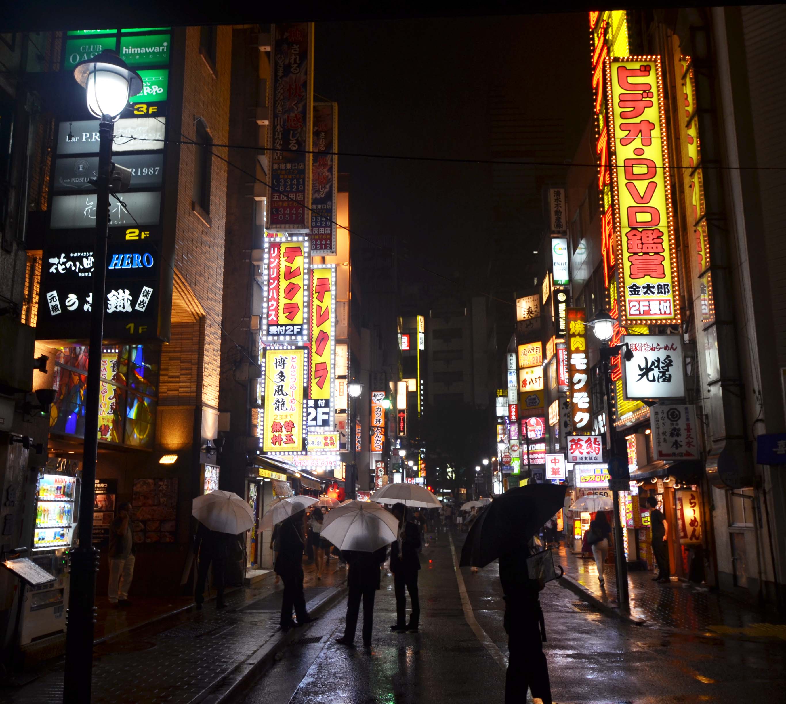 The Japanese don’t let a little rain spoil their evenings. Umbrellas everywhere!